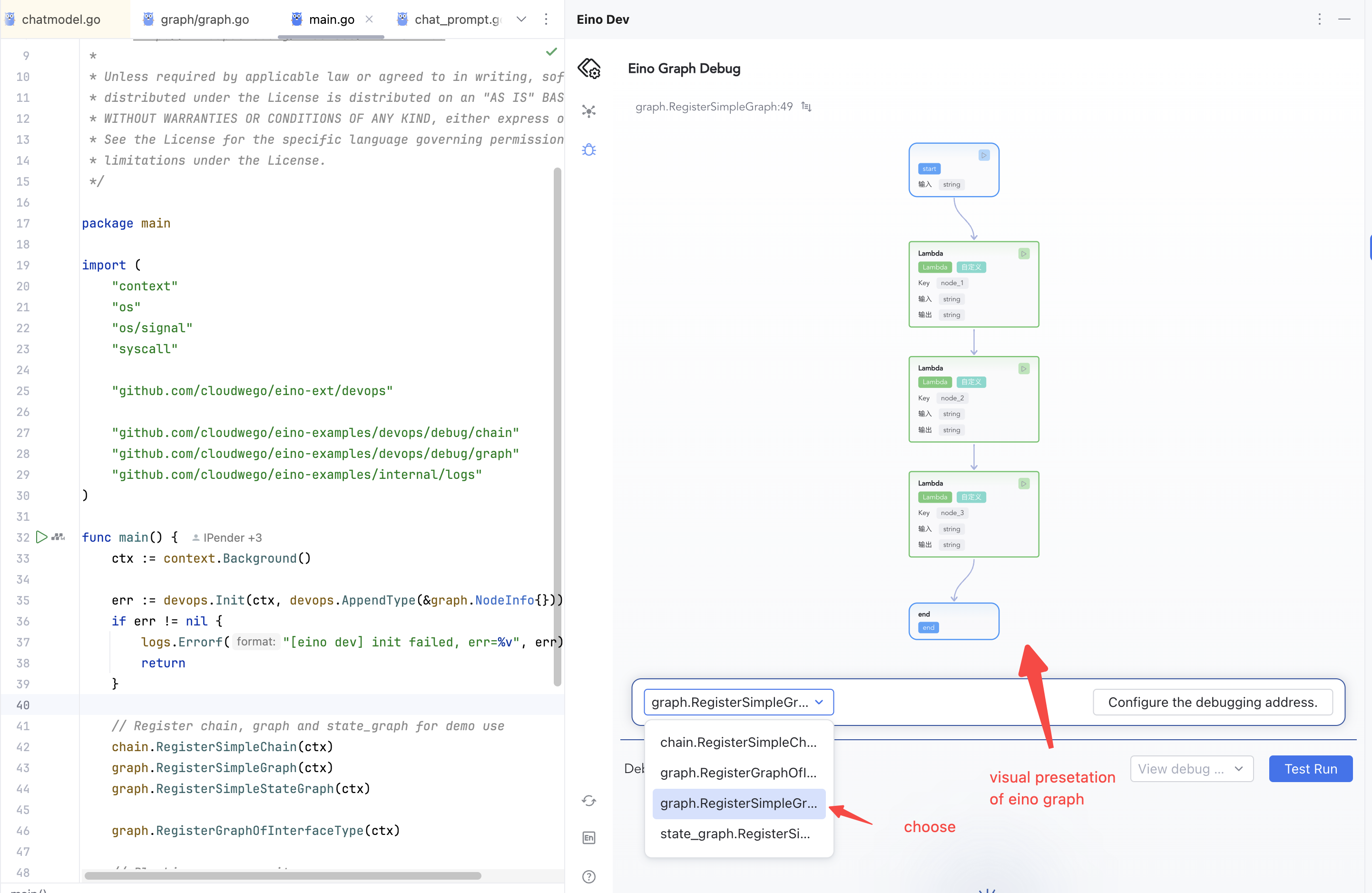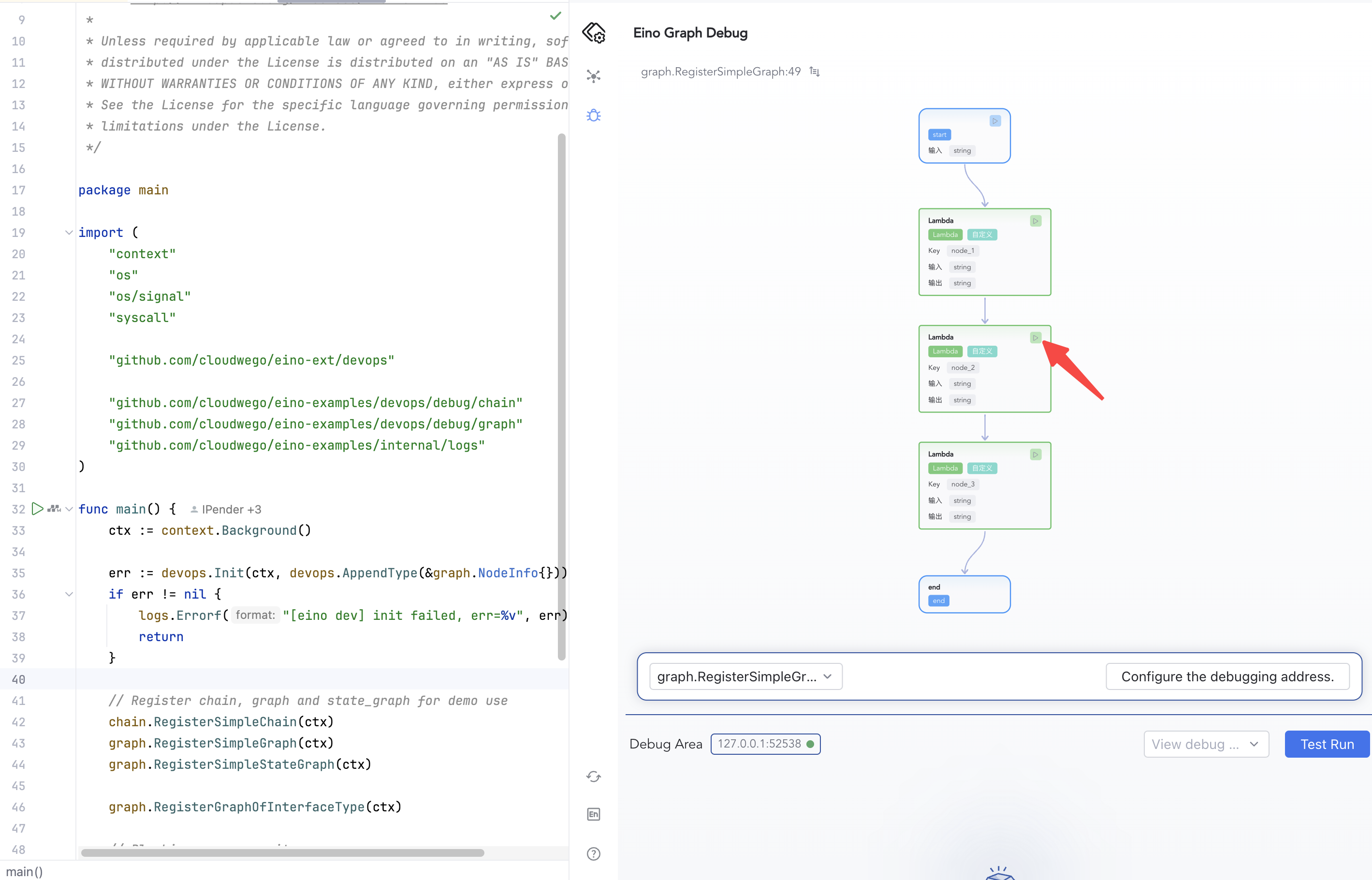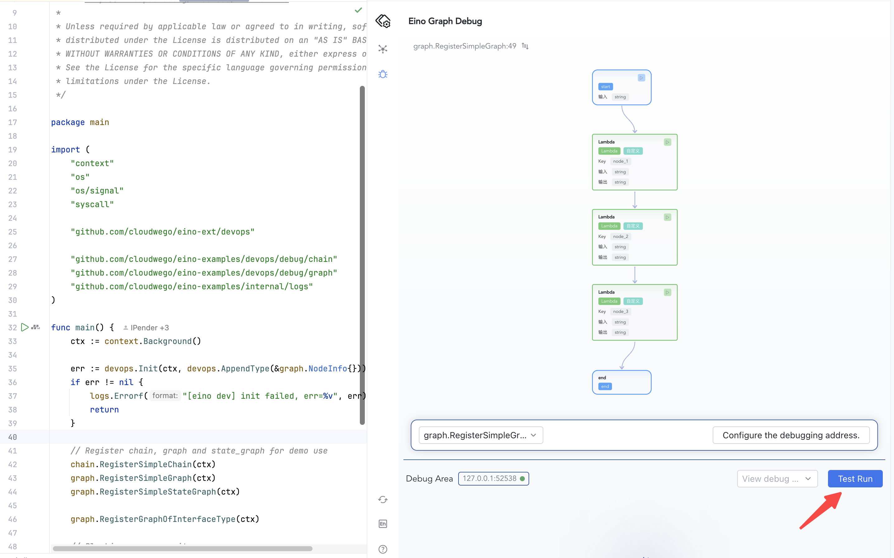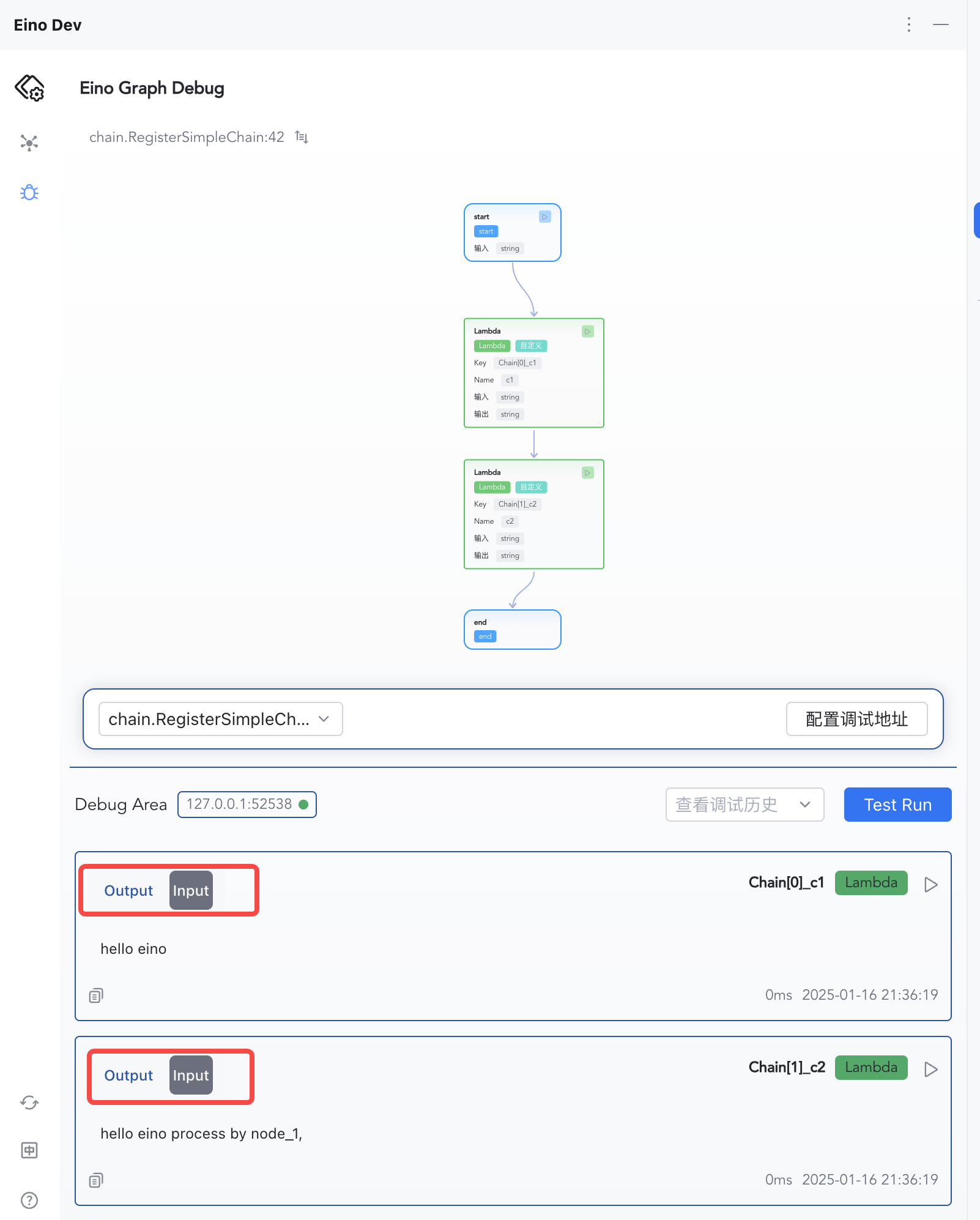 💡 Using this plugin, you can visually debug the orchestration products (Graph, Chain) written using the Eino framework: