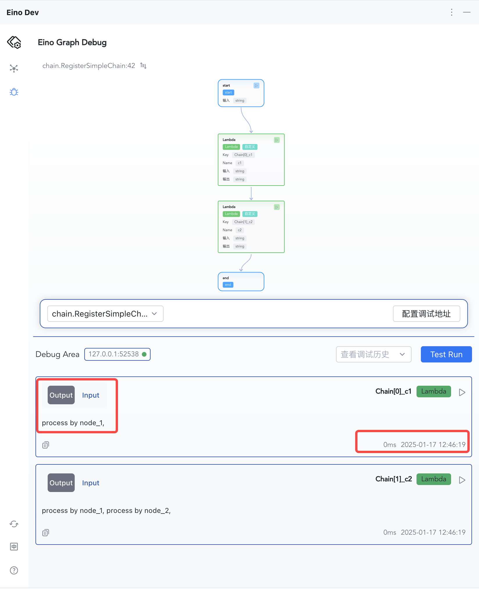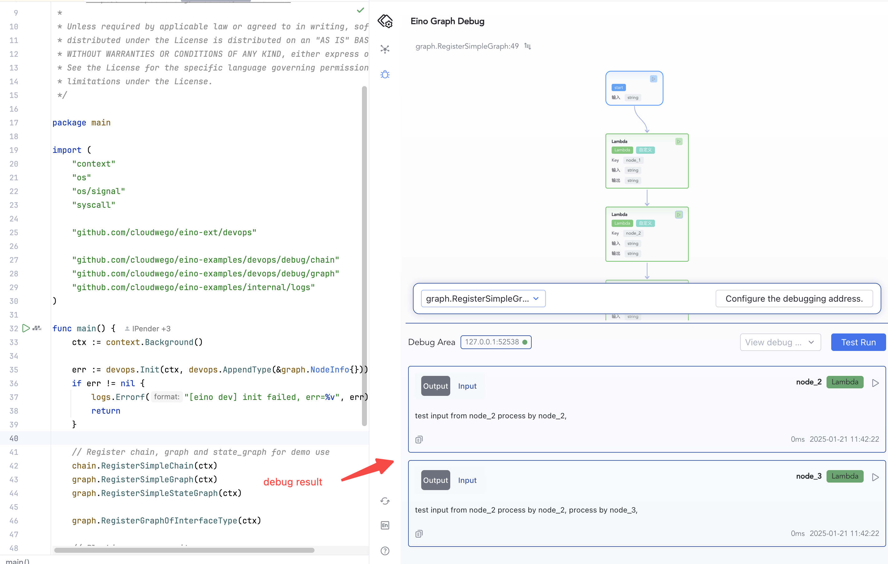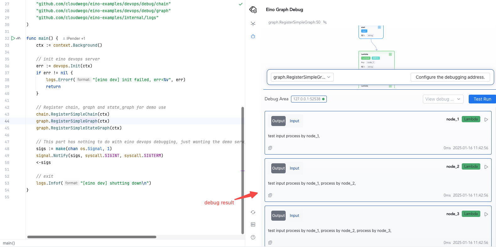 💡 Using this plugin, you can visually debug the orchestration products (Graph, Chain) written using the Eino framework: