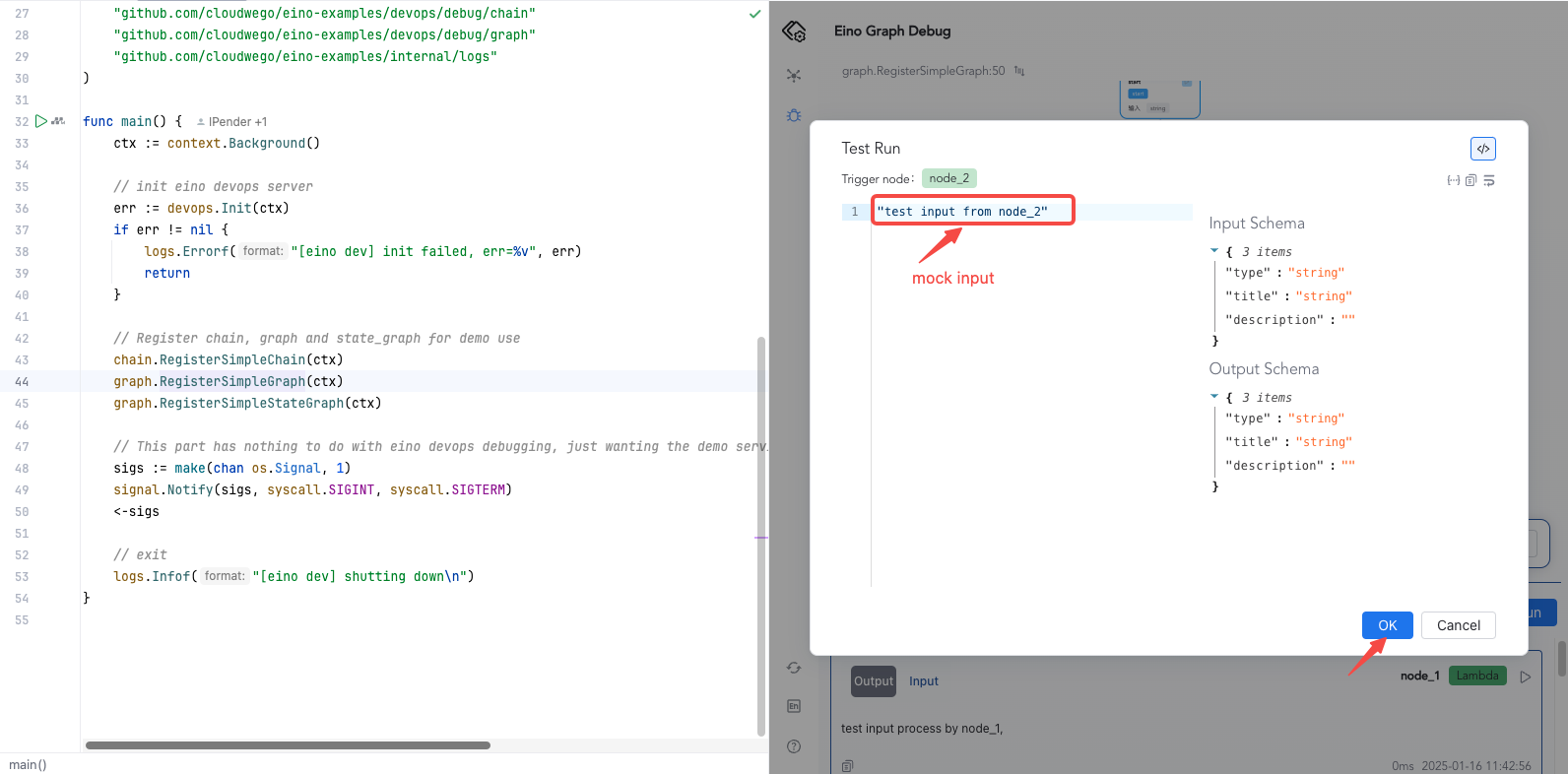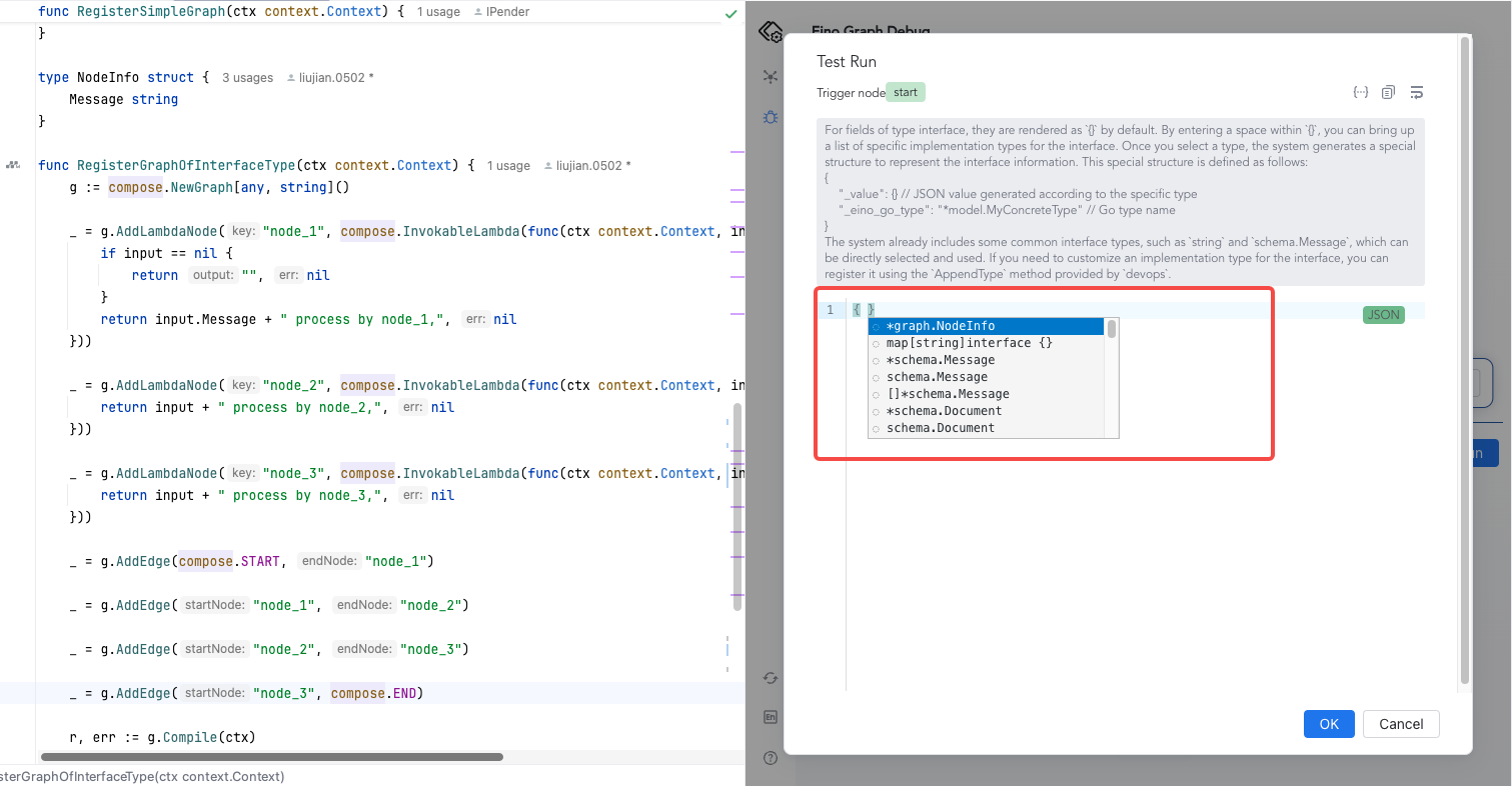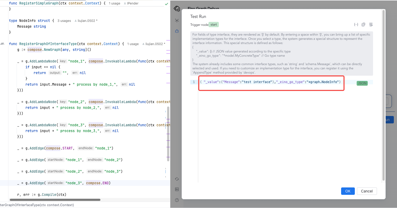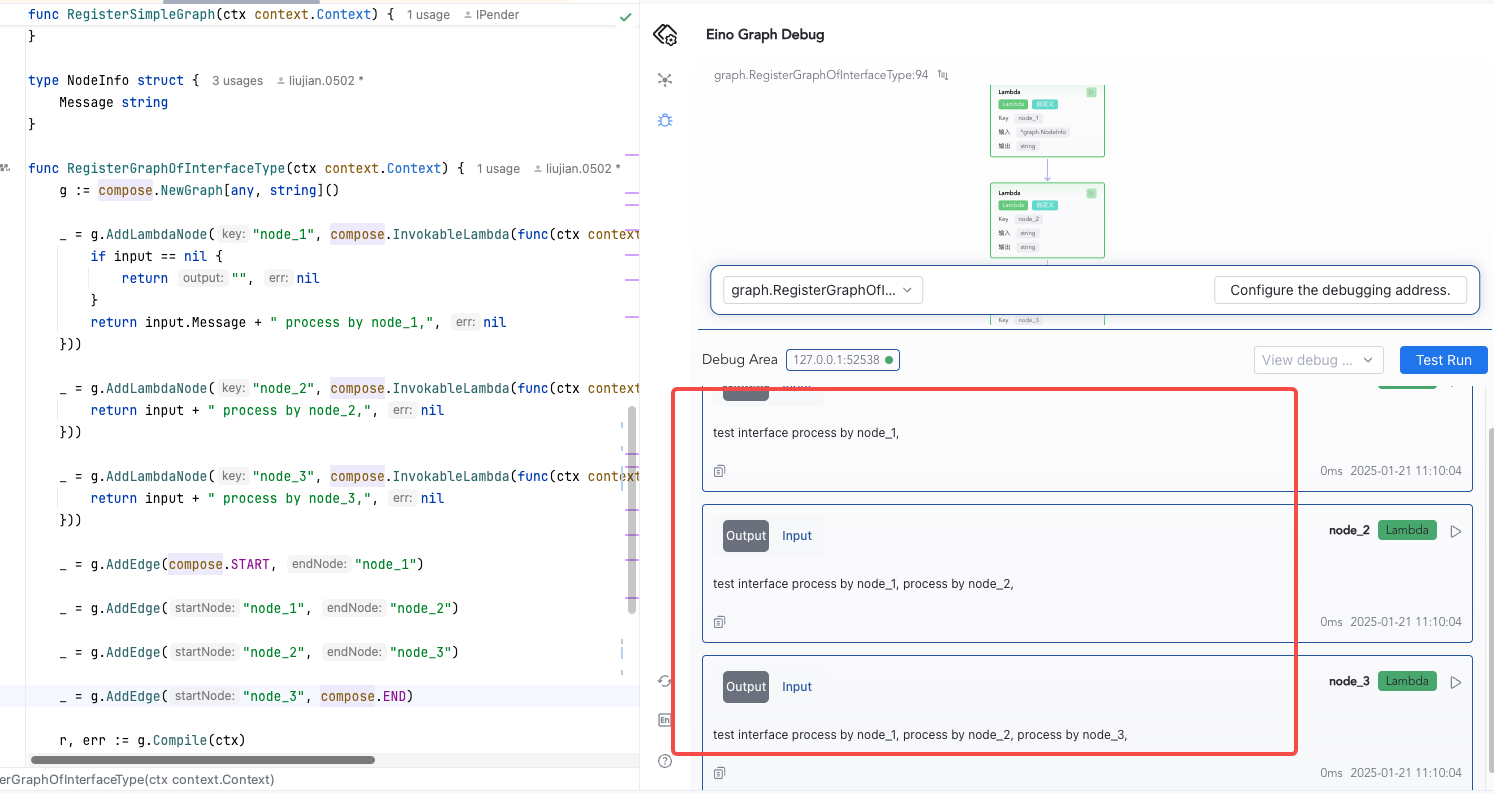 💡 Using this plugin, you can visually debug the orchestration products (Graph, Chain) written using the Eino framework: