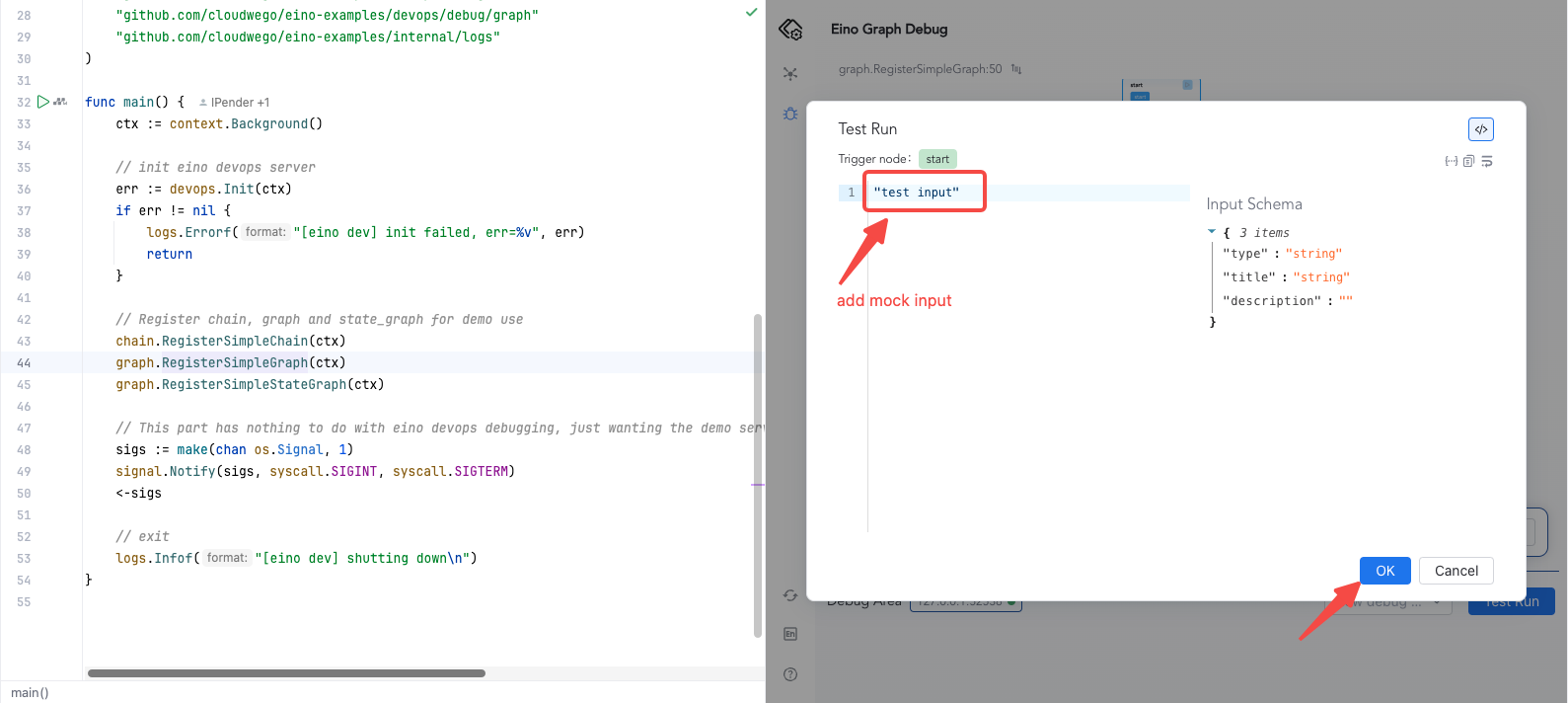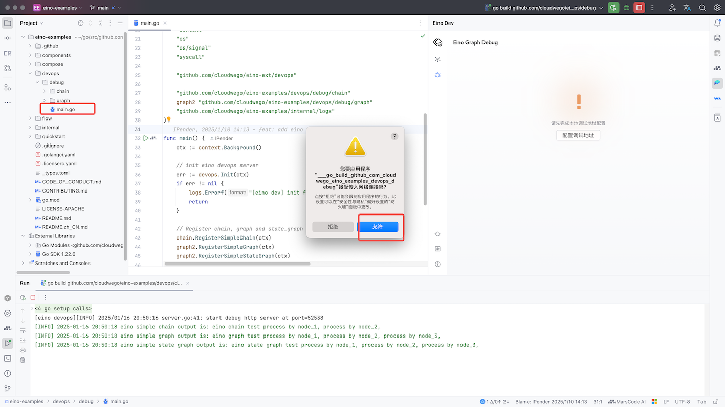 In github.com/cloudwego/eino-examples/devops/debug/main.go, the main()