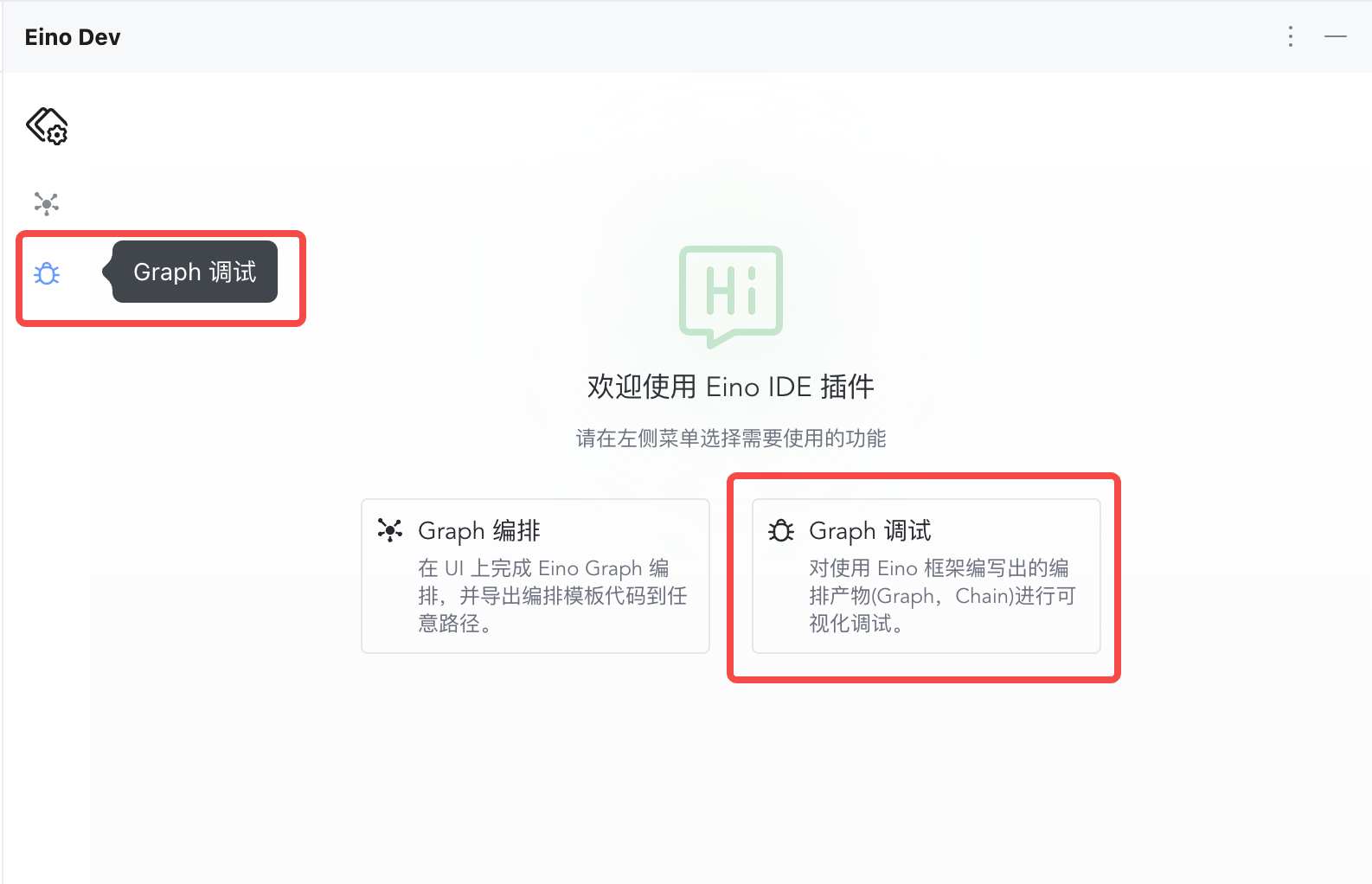 from github.com/cloudwego/eino-ext/devops to start the debugging service.