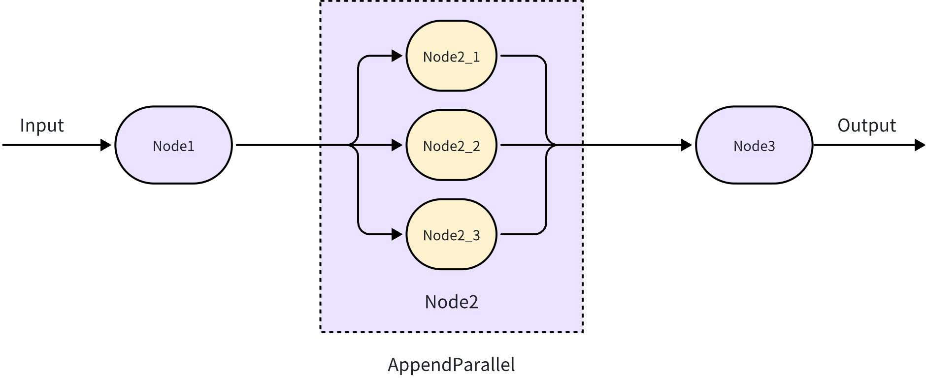 - Connect multiple nodes in parallel to form nodes that execute concurrently