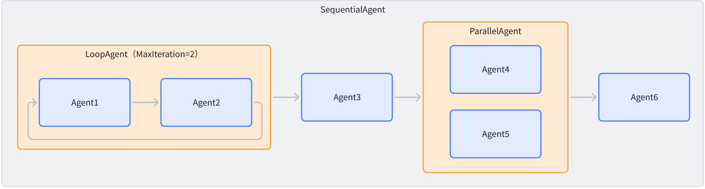 • Agent5: [SequentialAgent, LoopAgent, Agent3, ParallelAgent, Agent5]