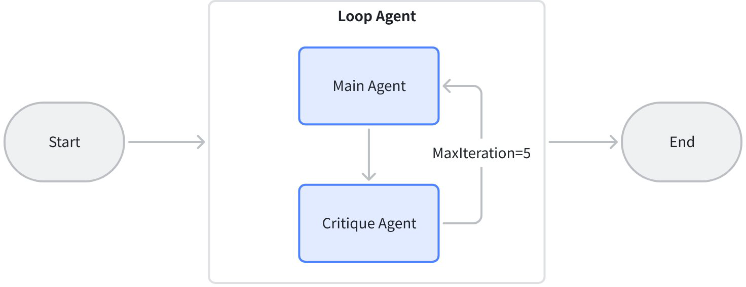 - 循环 (Loop Agent):重复执行子 Agents,直至满足特定的终止条件