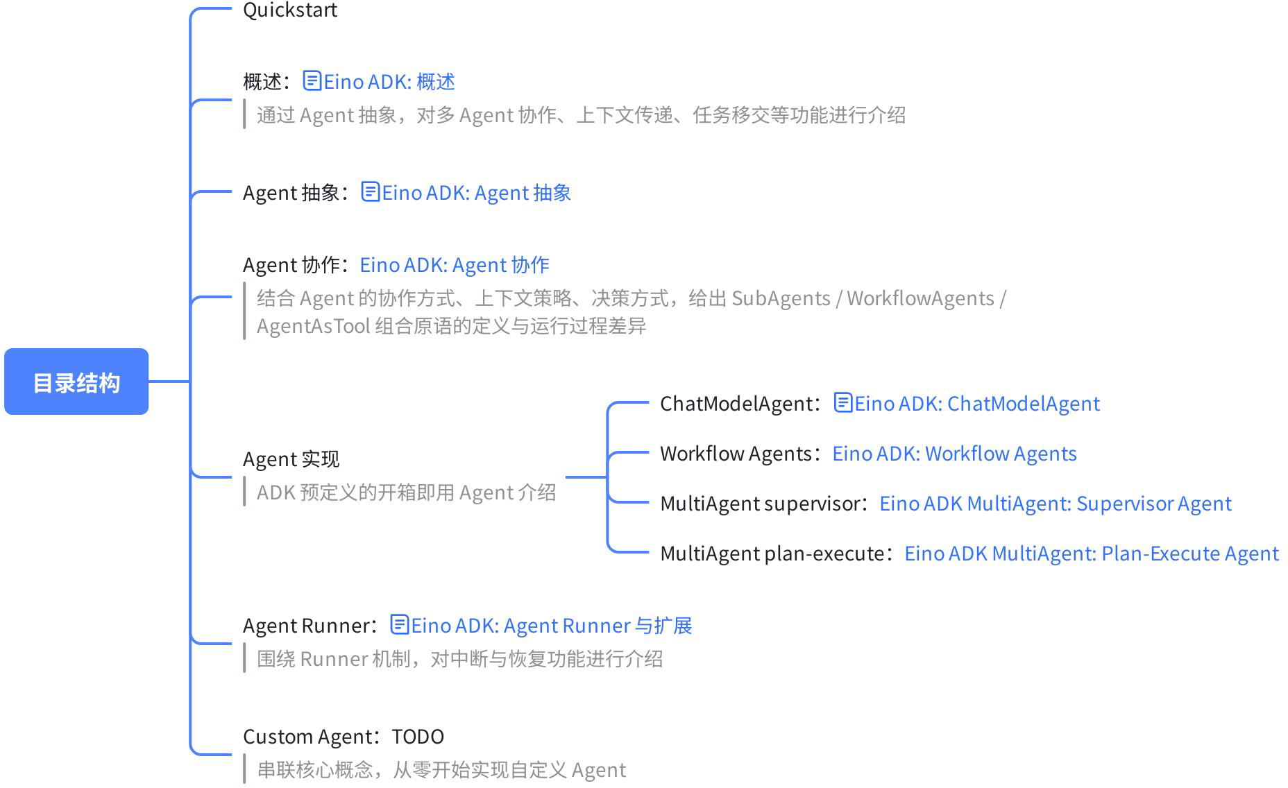 经过 Quickstart 概览,您应该对 Eino ADK 与 Agent 有了基础的认知。