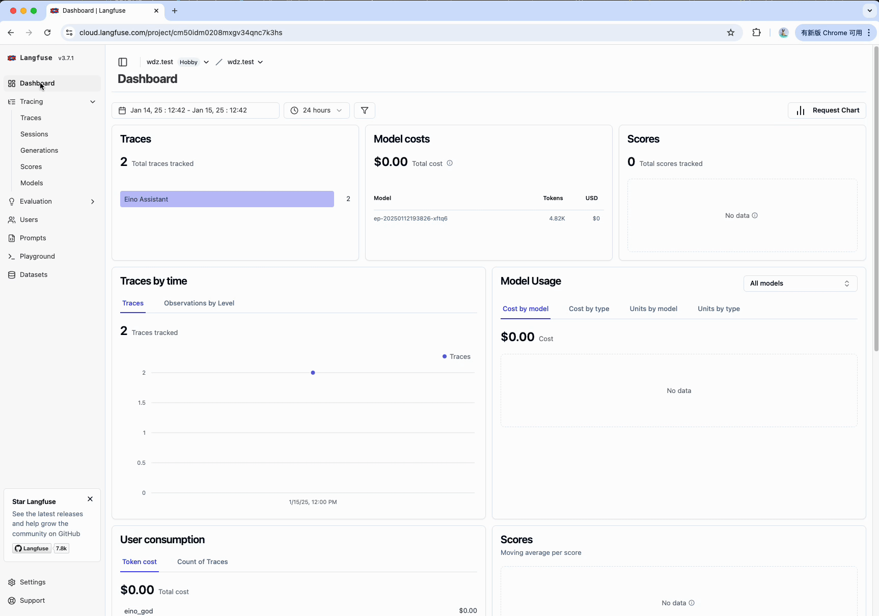 Eino 基于 graph callback 能力封装了 langfuse 的 trace 能力(参见 https://langfuse.com/docs/get-started),使用示例如下: